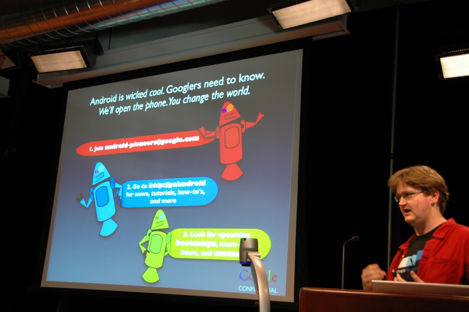 In August 2007, the Android platform, architecture, SDK, and the ‘Sooner’ prototype device were presented in a techtalk at Google. Prior to that the project had been operating quietly, without exposure to other employees or teams not somehow directly involved with it.